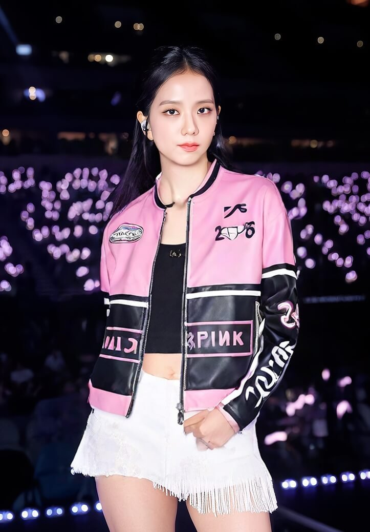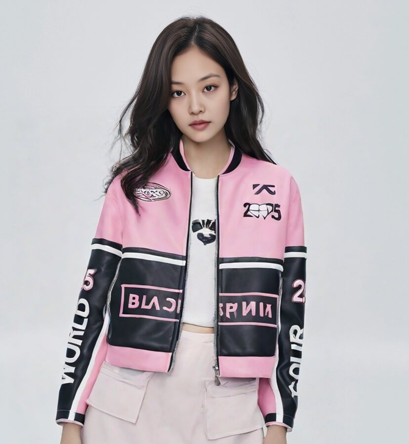 Black Pink Leather Jacket 2025 Tour Jump, Leather applique and Leather patches, 2025 World tour, Limited edition