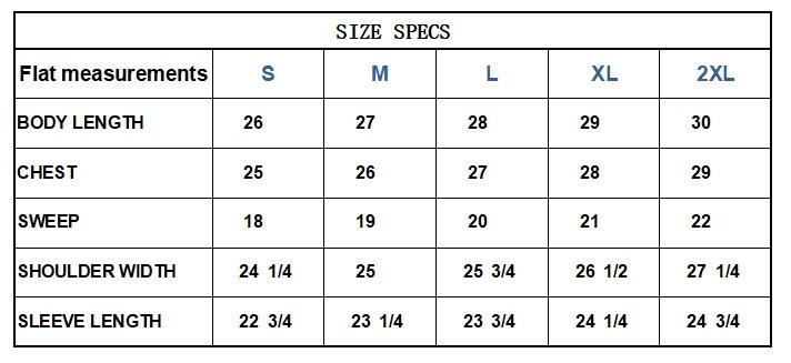 | Size | S, M, L, XL, 2XL |